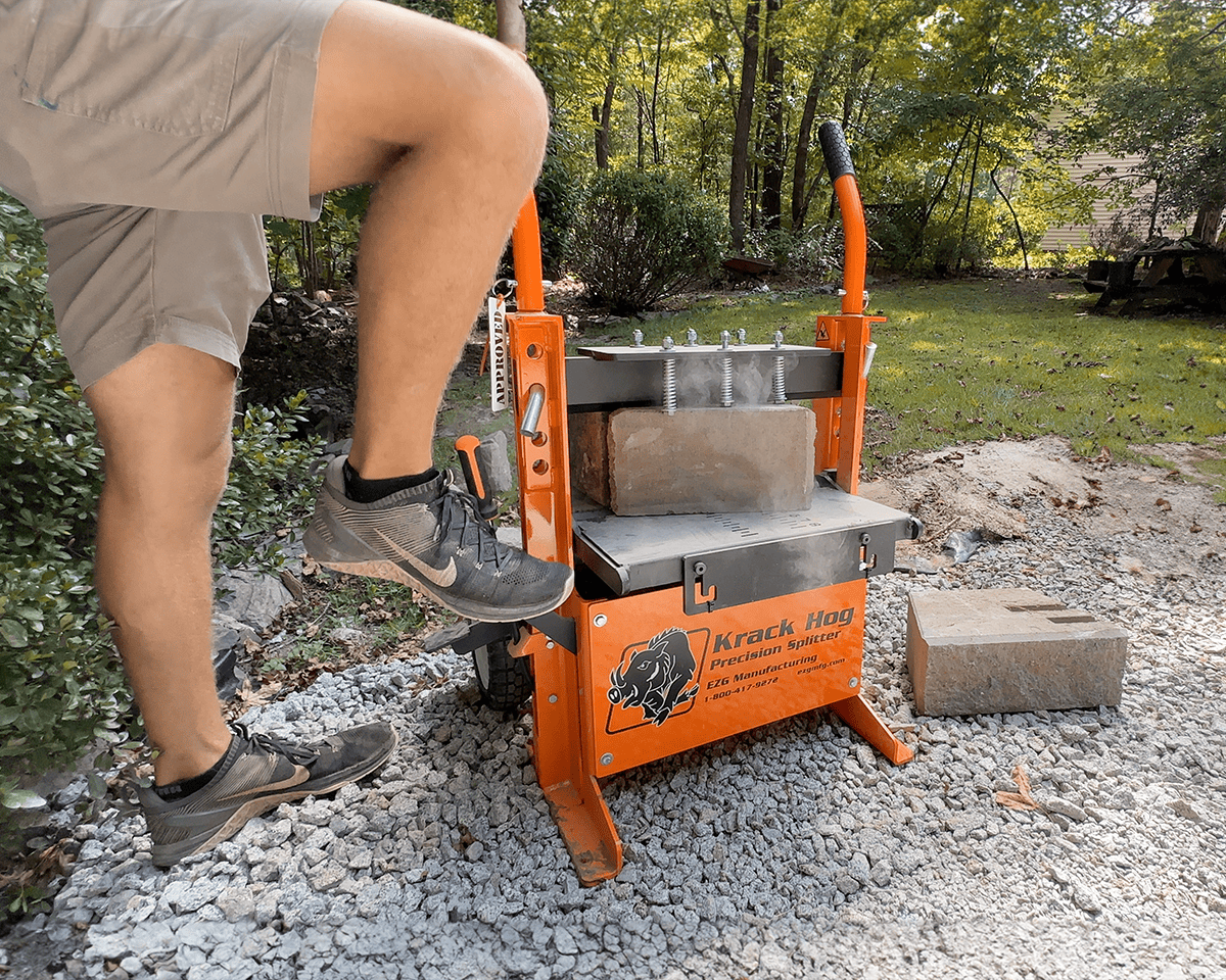 The Krack Hog Precision Splitter brings ergonomic ease to industrial block splitting applications. A simple foot pedal-operated hydraulic action provides the Krack Hog with 36,000 PSI power to split up to 8” blocks effortlessly. The spring-loaded splitting surface maintains tight block positioning during operation and provides an exact split every time. In addition to providing raw power, the Krack Hog’s design ensures long operation life with a hardened-steel splitting blade for superior durability.